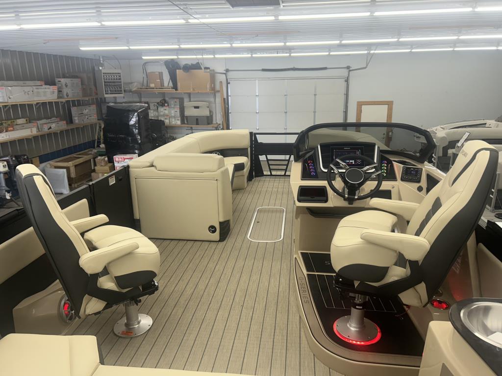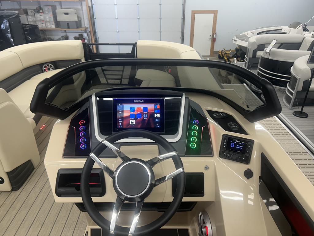 Upgraded Features: Digital Controls, Yamaha Digital Steering, Premium Sound Package, Center Tube Storage, RGB Lighting Package, Ski Tow, Painted Black Tubes, Teak Weave Flooring, Chilled Cup Holder, Power Pedestal, Upgraded Bimini Top, Lillipad Revo Ladder.
